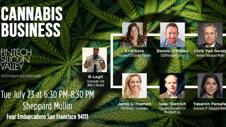 DISCUSSION: Erin Gore Founder/CEO Garden Society; Jamie L. Pearson, COO Bhang Corporation; Isaac Dietrich. Founder/Chairman/CEO MassRoots Inc; Joe Sequenzia CMO Caliva; B-Legit CoFounder Sick With It Records; MODERATOR: Yasamin Parsafar Associate IP Sheppard Mullin
